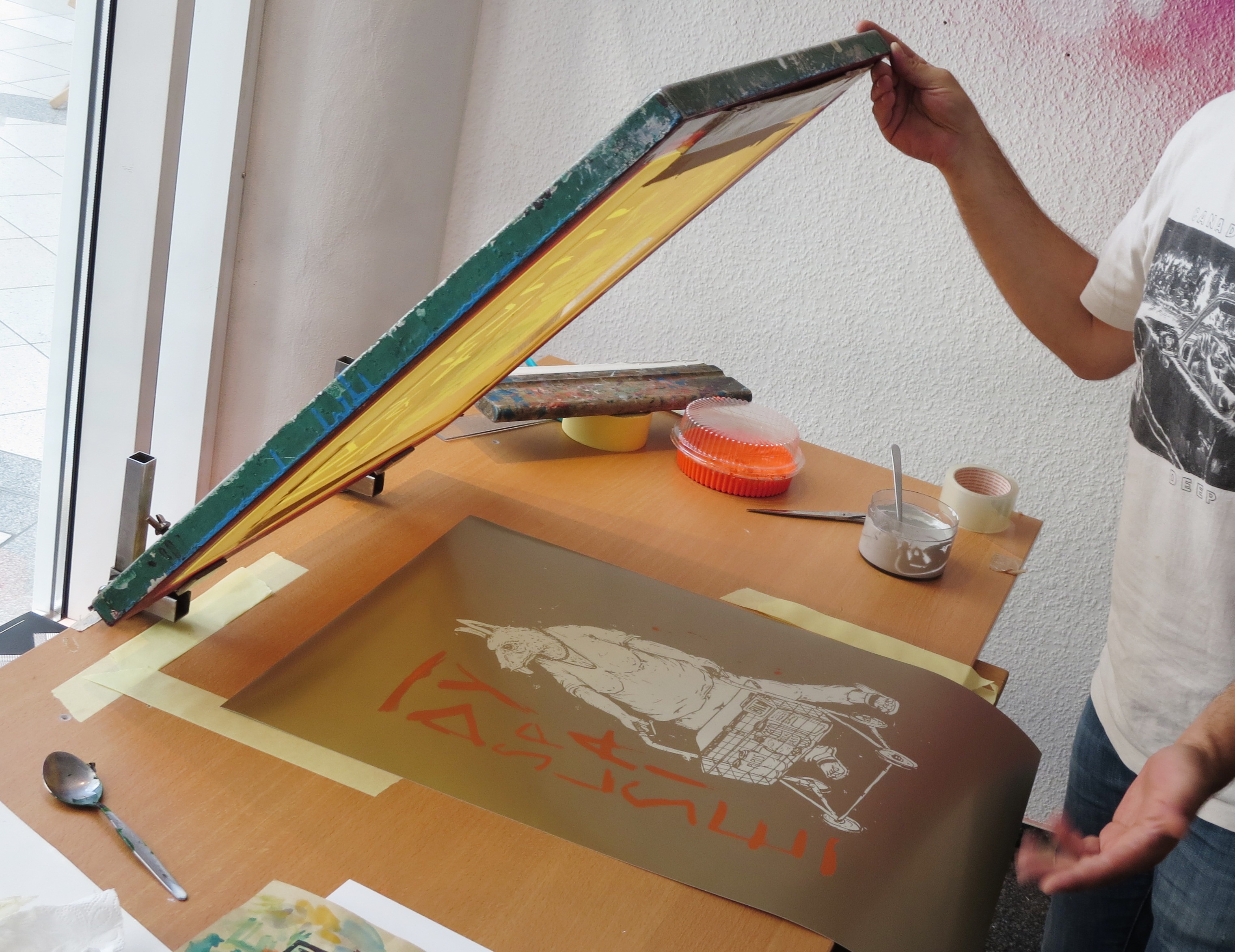 Der öffentlicher Workspace Illustration & Siebdruck, mit Woodbird, Café Lala, Frankenstoner, Black Forest Industries und Svenson lädt ein zum Vorbeikommen, zusehen und Austausch.